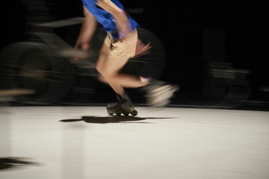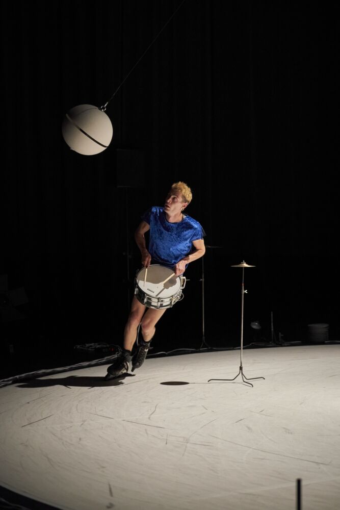 Le roulement de tambour vibre, une boule de céramique virevolte, l’artiste tourne et glisse sur ses rollers dans une quête effrénée après le temps, la céramique se casse et se fracasse… Entre goût du risque et joyeux stress, l’artiste Julian Vogel met en scène les contrastes et les équilibres fragiles qui déterminent la vie.