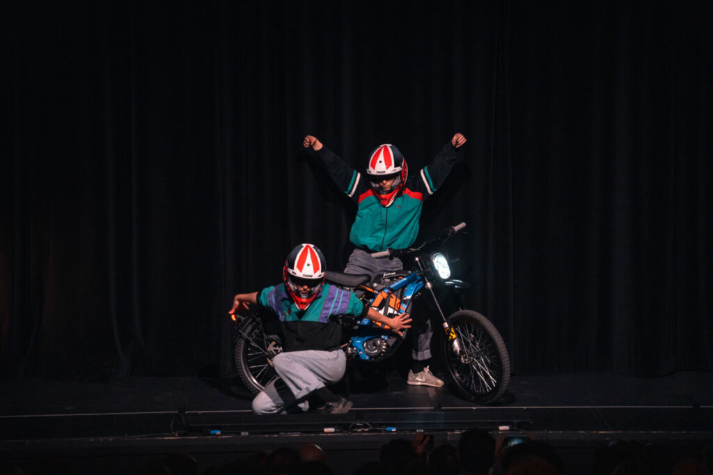 Fabulation est un spectacle à la croisée du cirque et de la cascade. Deux artistes y détournent la moto comme agrès central pour explorer la frontière entre réel et fiction, chute et illusion. Une création qui invente de nouvelles formes d’acrobatie et révèle l’extraordinaire caché derrière nos récits.